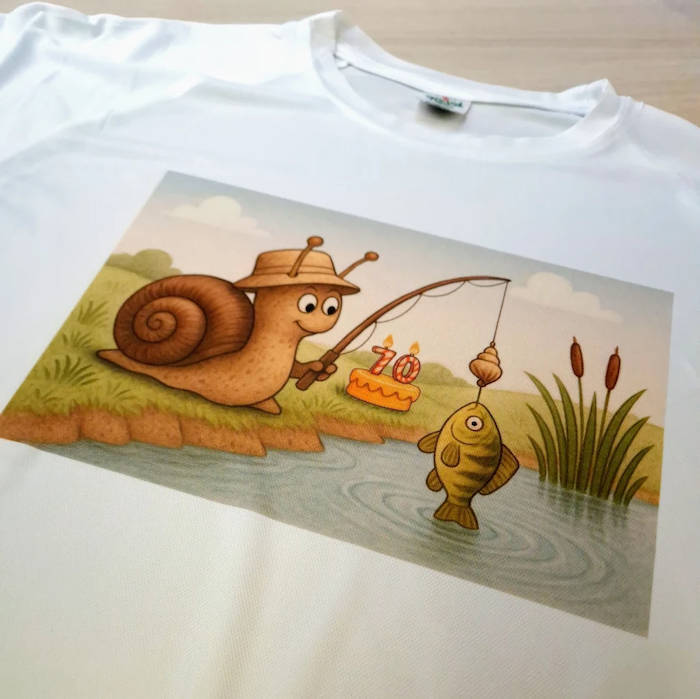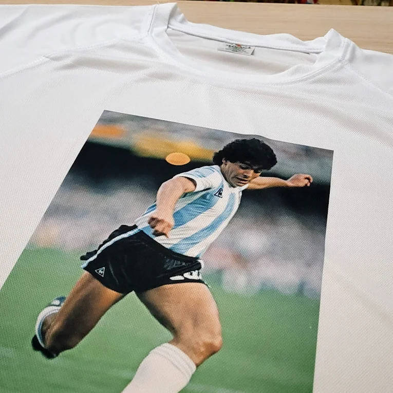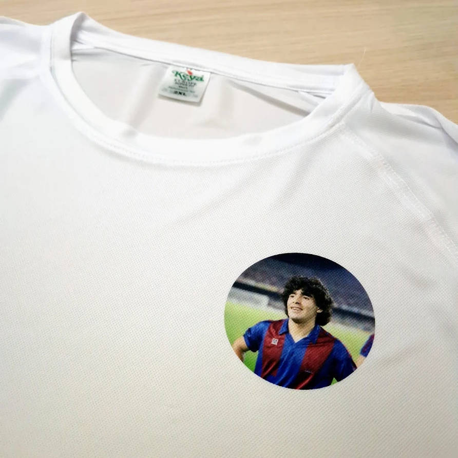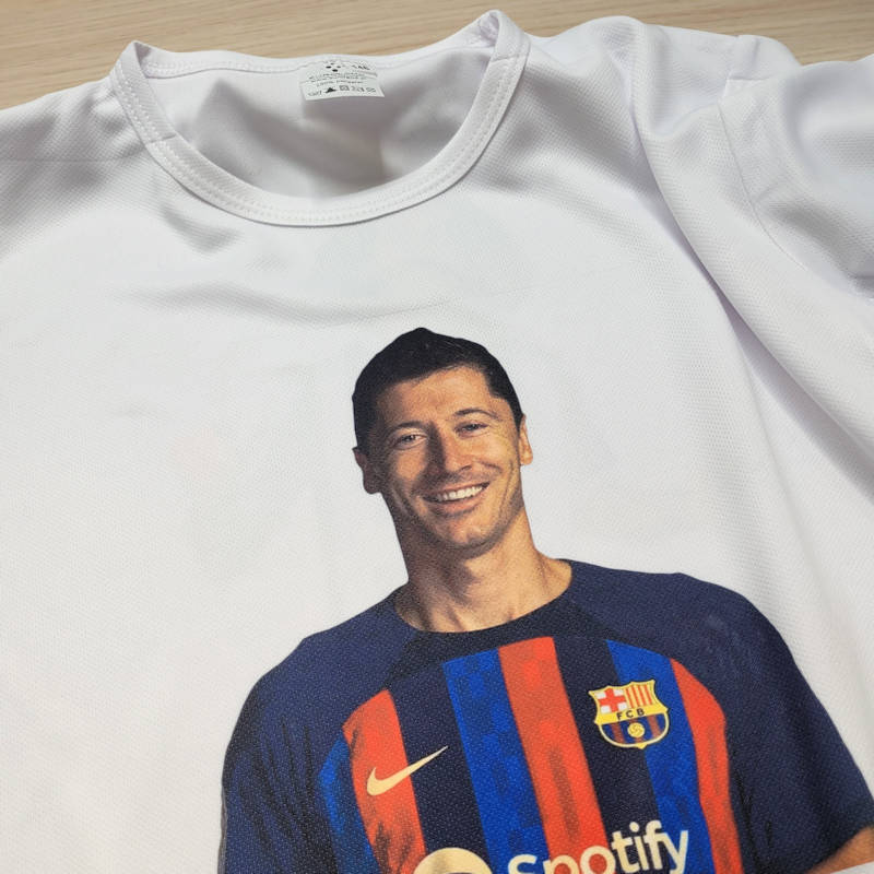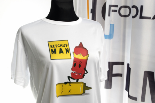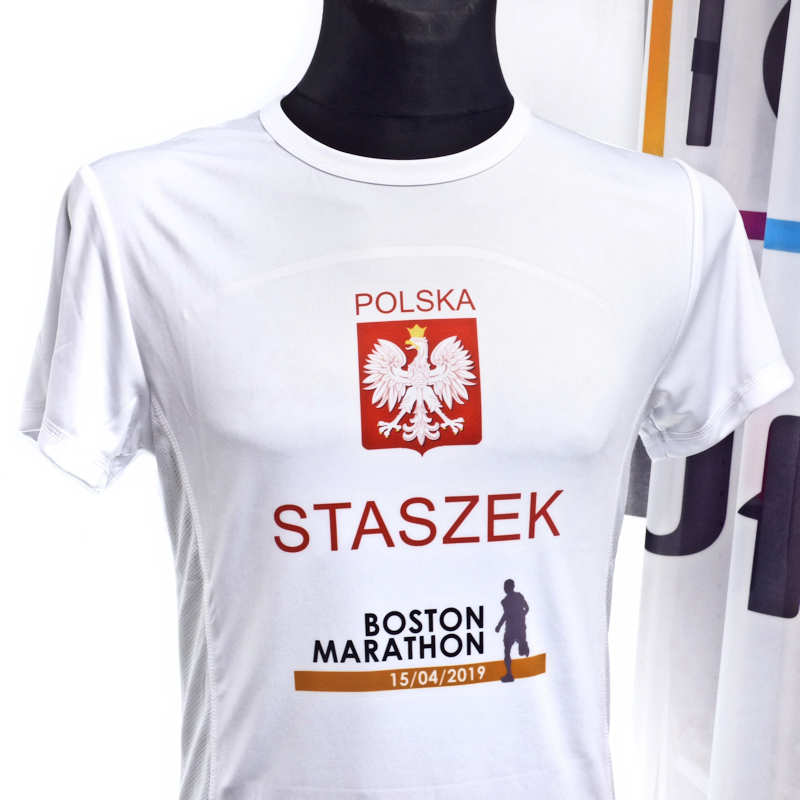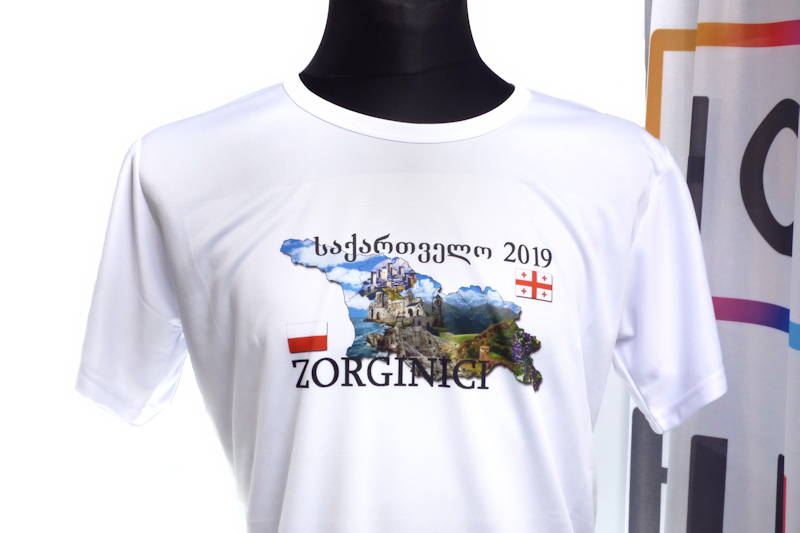 Nadruk paletą kolorów (full kolor) na odzieży poliestrowej klienta. Koszulka biała lub bardzo jasna z zawartością minimum 85% poliestru